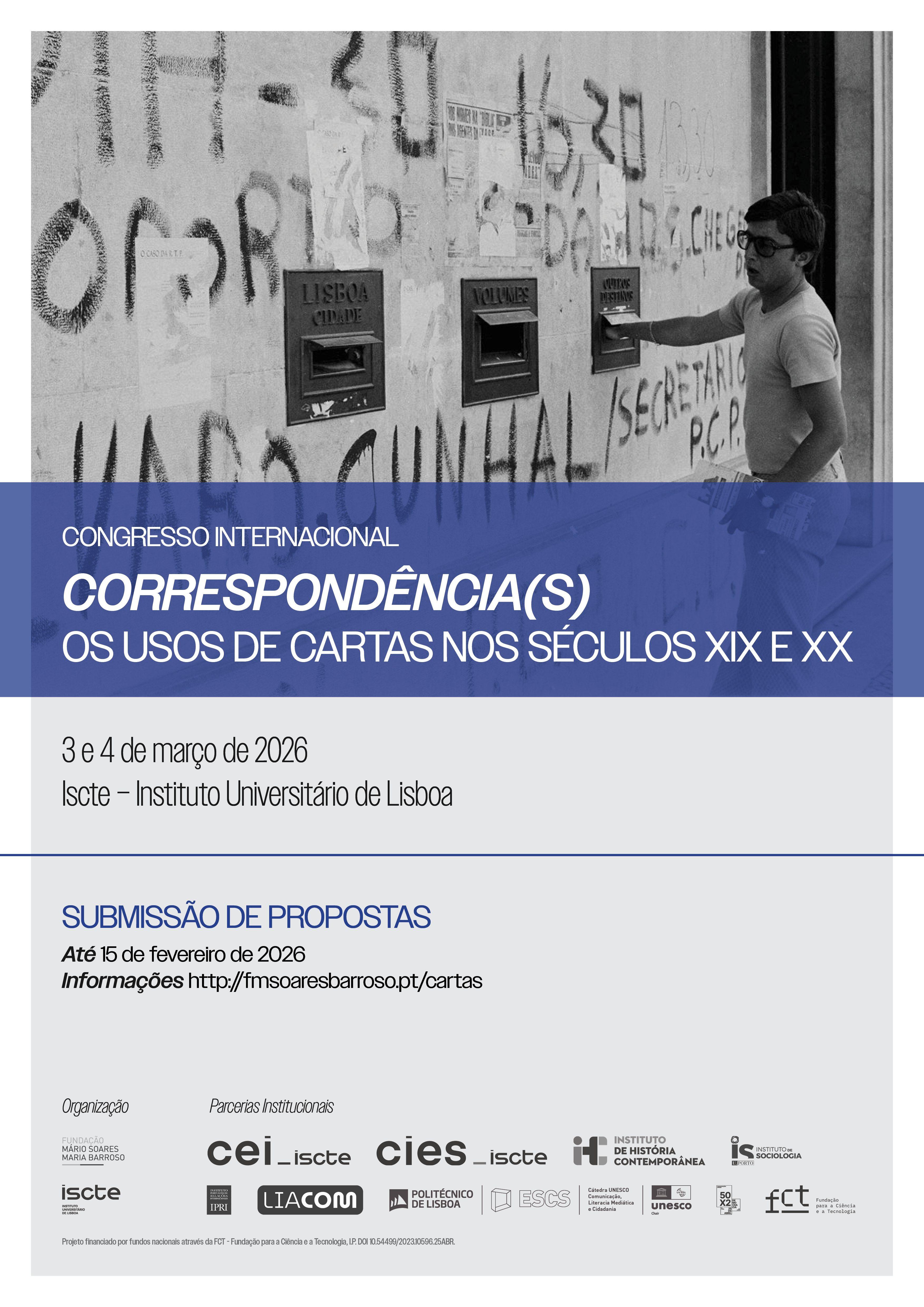 O Congresso Internacional “Correspondência(s). Os usos de cartas nos séculos XIX e XX” realiza-se nos dias 3 e 4 de março de 2026, no ISCTE – Instituto Universitário de Lisboa.