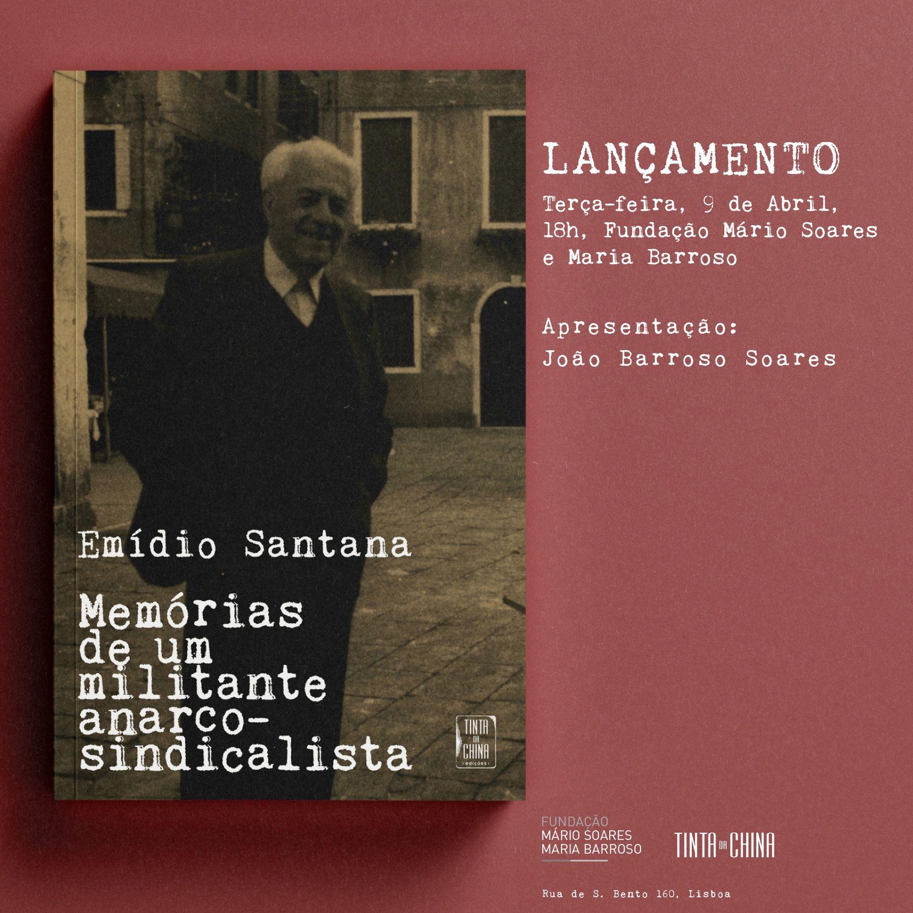 A Fundação Mário Soares e Maria Barroso acolhe o lançamento do livro "Memórias de um militante anarco-sindicalista", da autoria de Emídio Santana.