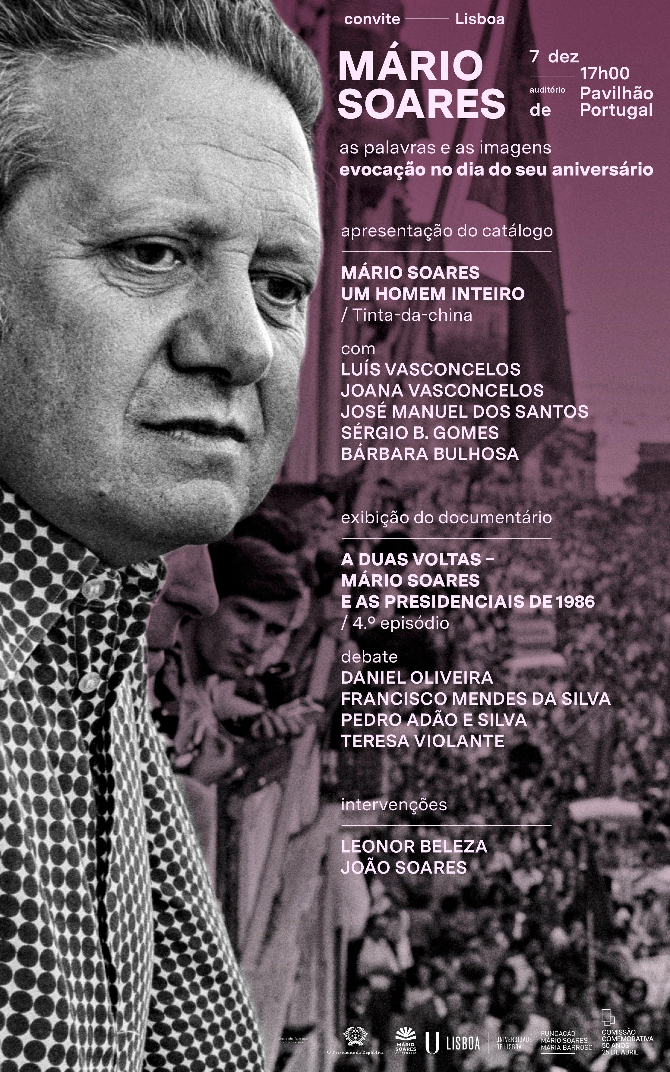 No dia 7 de dezembro de 2025, pelas 17h00, no Pavilhão de Portugal, em Lisboa, terá lugar a sessão "Mário Soares - as palavras e as imagens", no dia do seu aniversário.