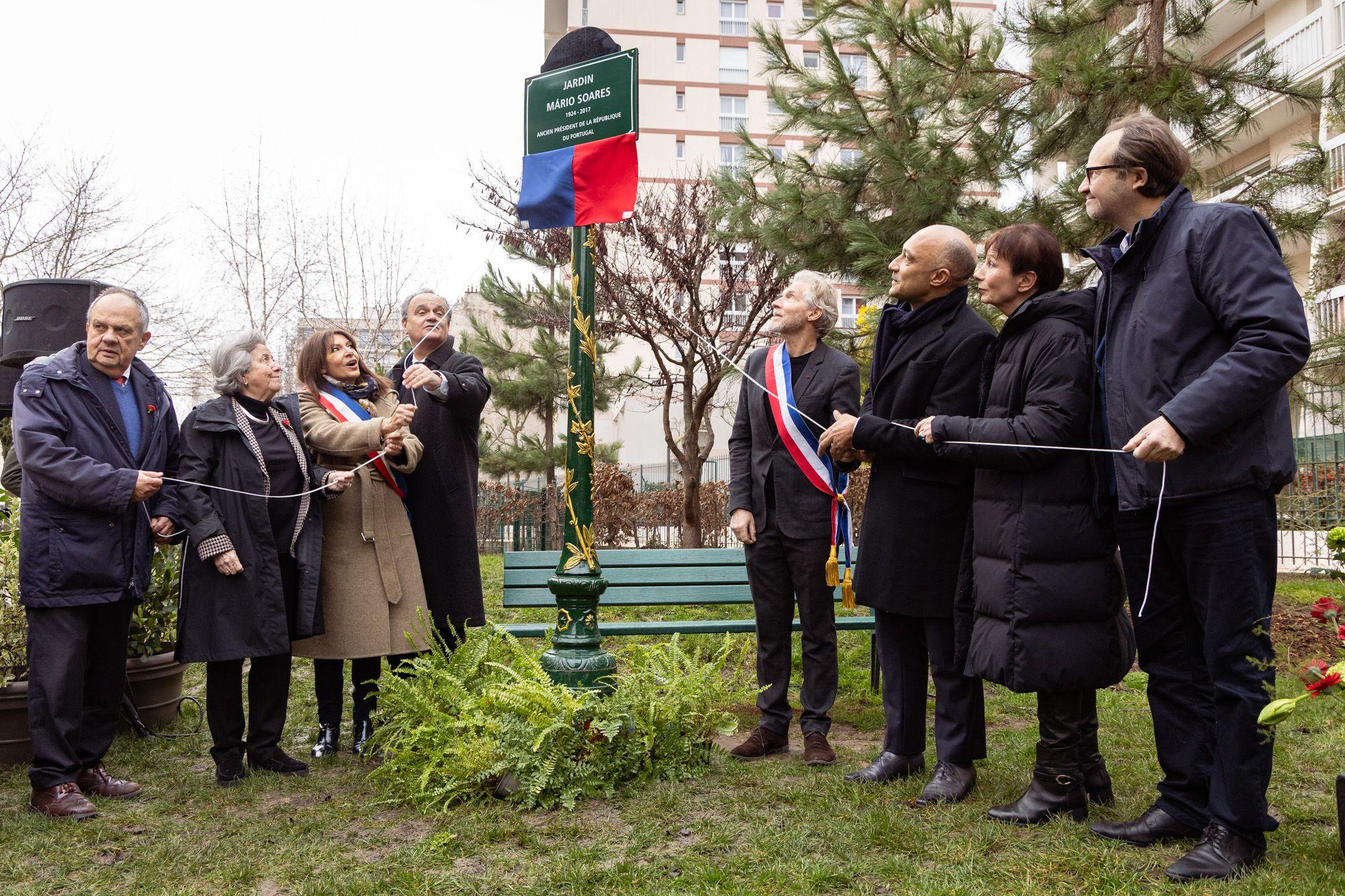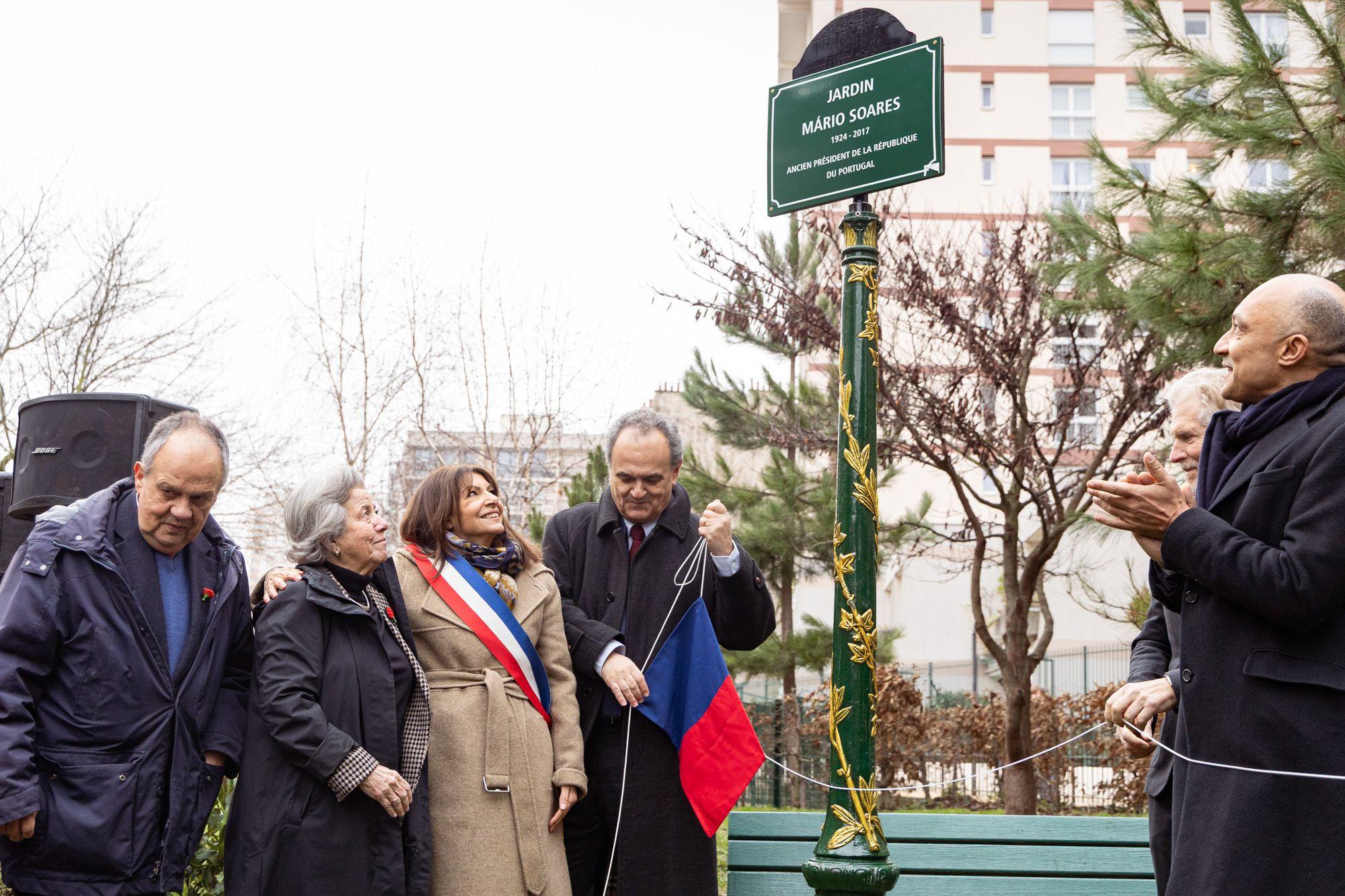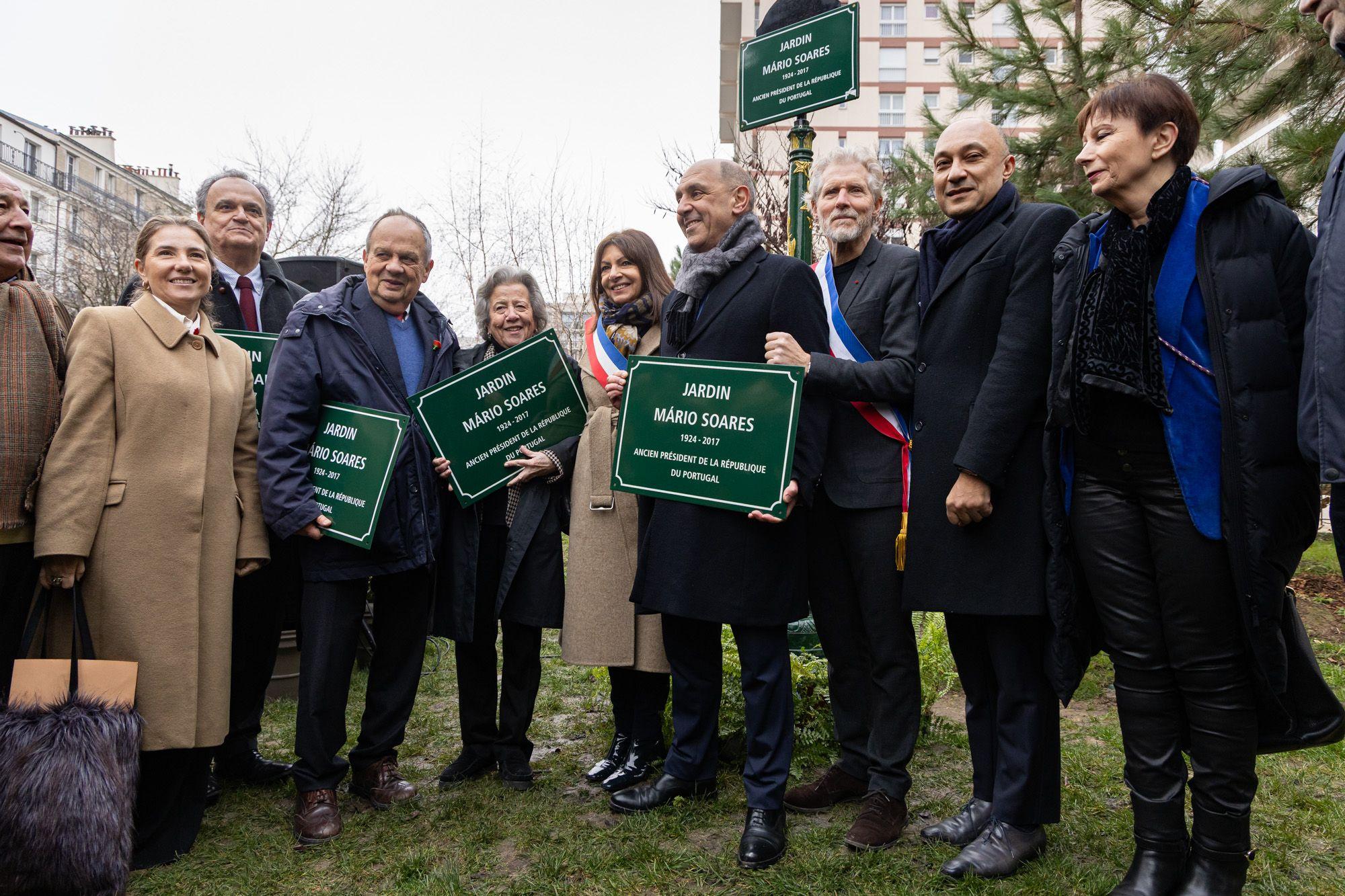 Foi inaugurado no dia 31 de Janeiro de 2026 o Jardin Mário Soares, novo espaço público situado na rue Pixérécourt, no 20.º bairro de Paris. A cerimónia contou com as intervenções da Presidente da Câmara de Paris, Anne Hidalgo, do presidente do município do 20.º arrondissement, Éric Pliez, do Embaixador de Portugal em França, Francisco Ribeiro de Menezes, da Cônsul-Geral de Portugal em Paris, Mónica Lisboa, dos filhos do antigo Presidente da República, Isabel e João Soares, e da neta, Lilah Soares.