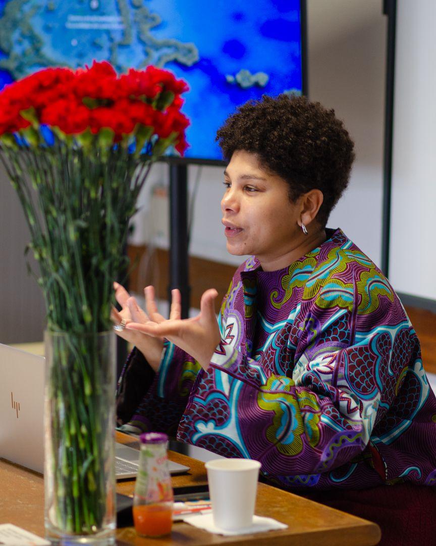 O workshop foi orientado por Melissa Rodrigues, artista visual, curadora e arte-educadora, e combinou momentos de contextualização histórica, discussão participativa e atividades práticas. A sessão começou com um exercício de partilha entre os participantes, centrado nas suas trajetórias educativas, nas referências culturais que marcam o seu percurso e nas perceções sobre o racismo na sociedade contemporânea.