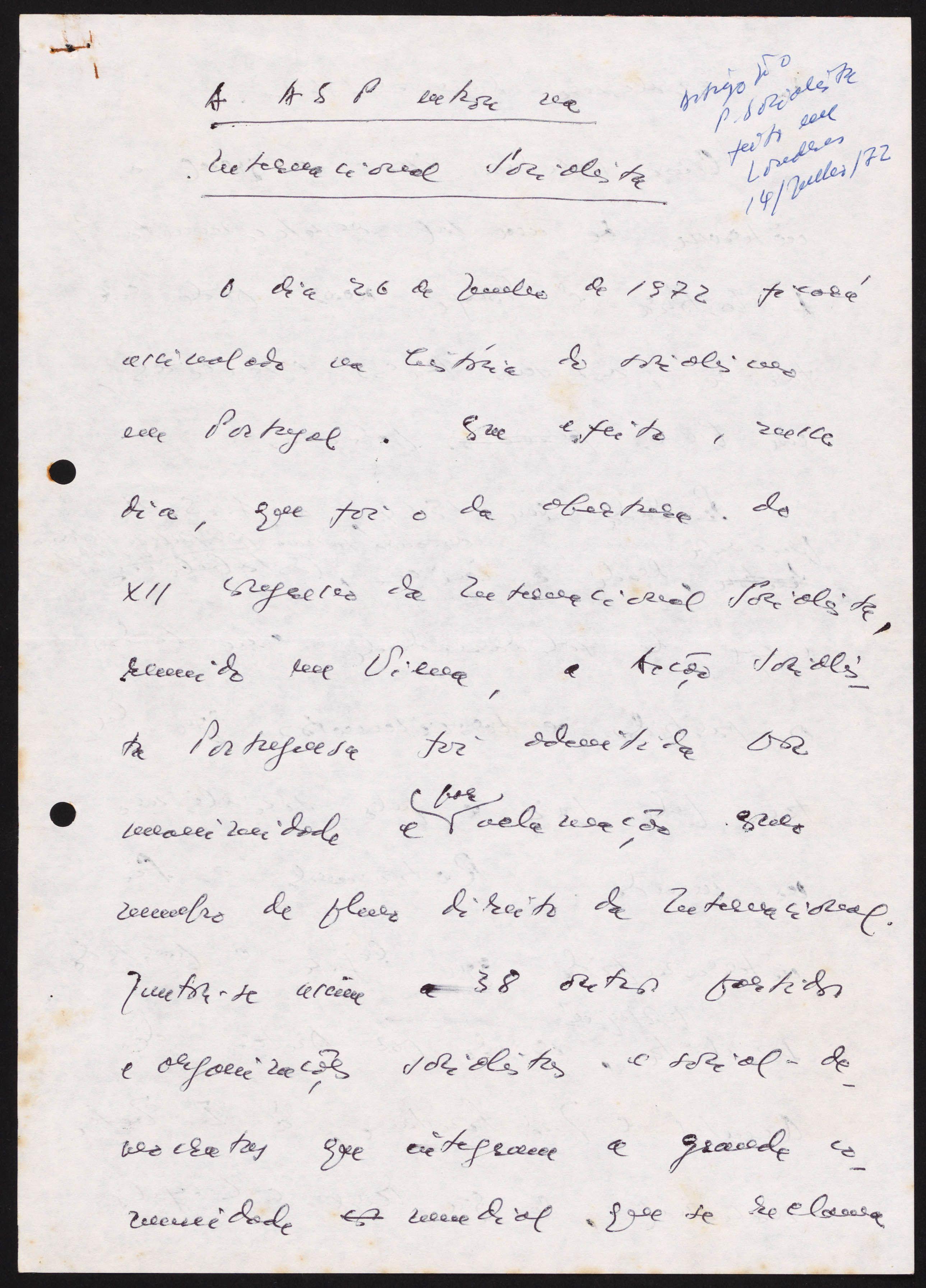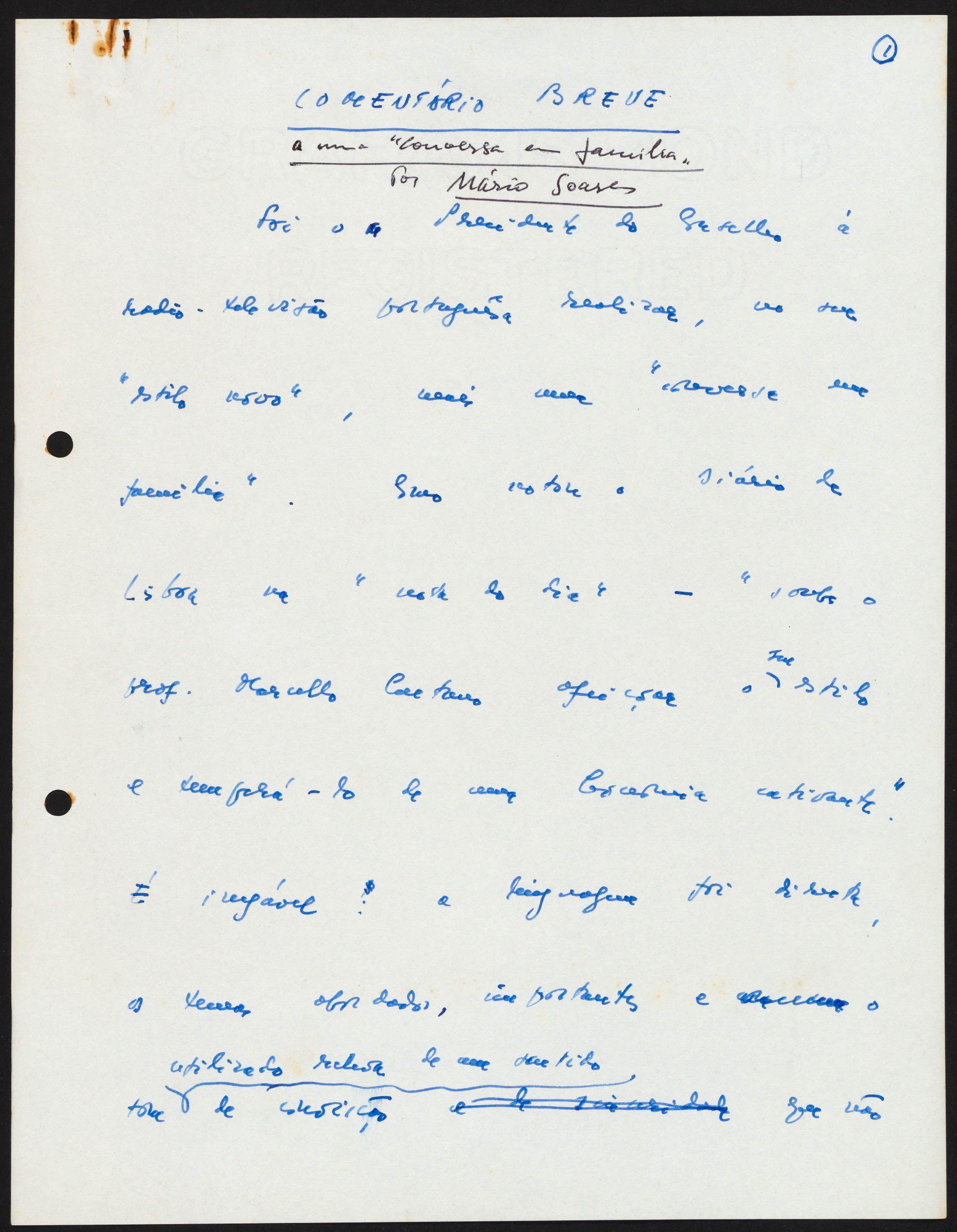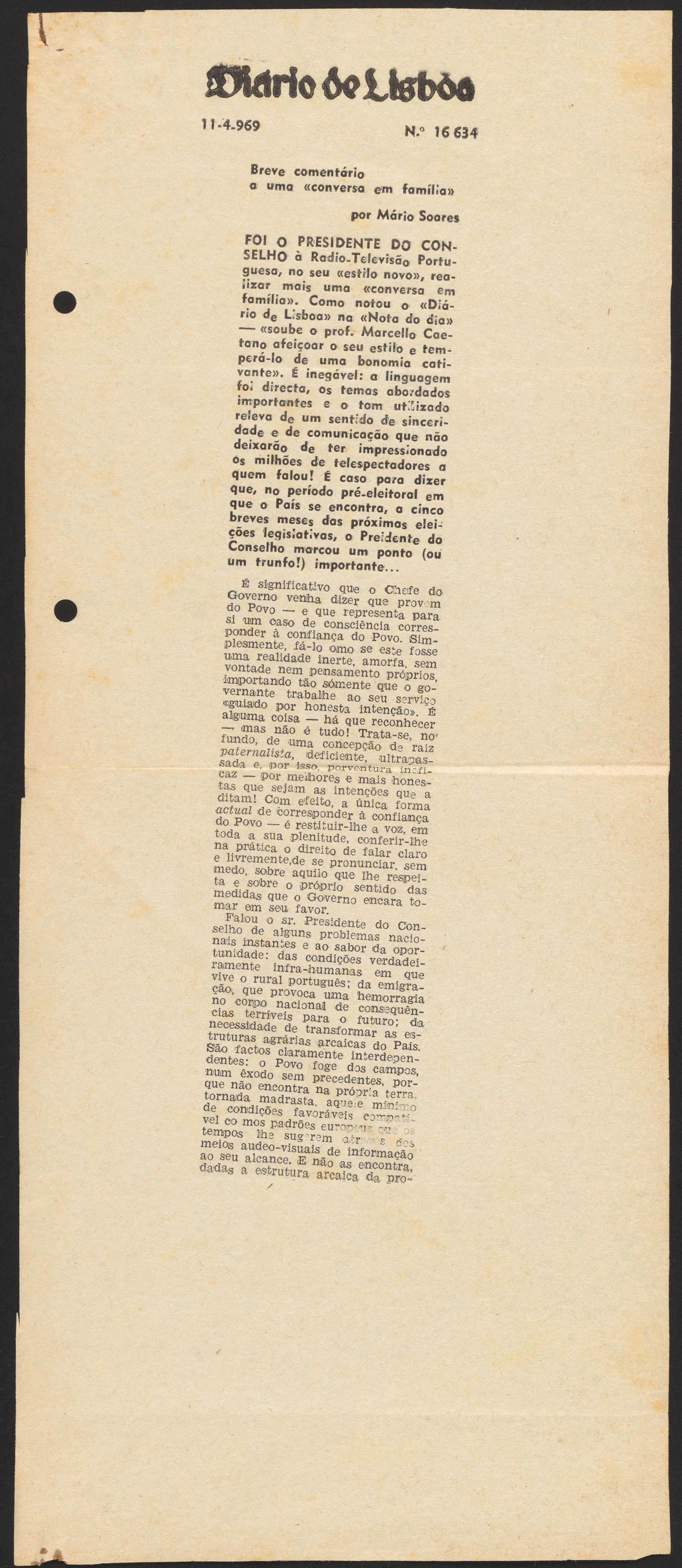 He writes a “Brief comment on ‘A Family Conversation’, by Marcello Caetano”, which, in spite of significant cuts by the censorship, is published in the daily newspaper Diário de Lisboa.