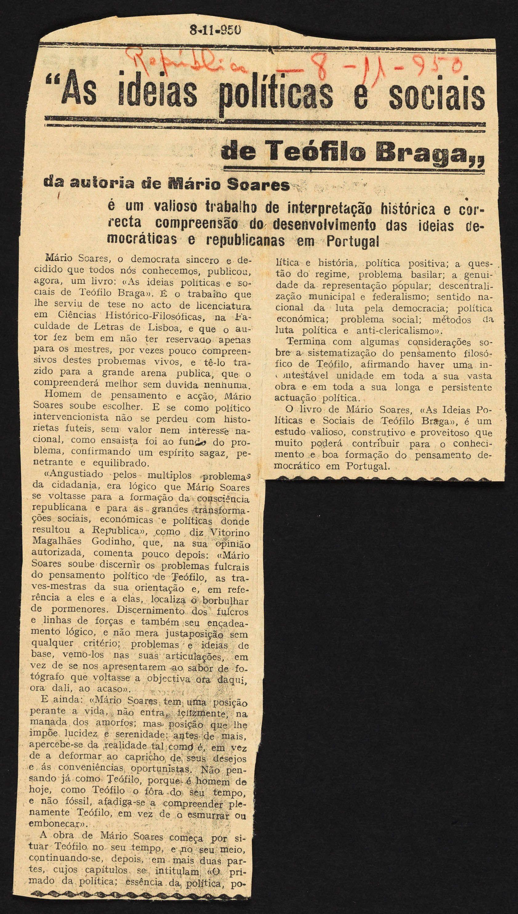Publishes his first book: As Ideias Político-Sociais de Teófilo Braga ("The Political and Social Ideas of Teófilo Braga."
