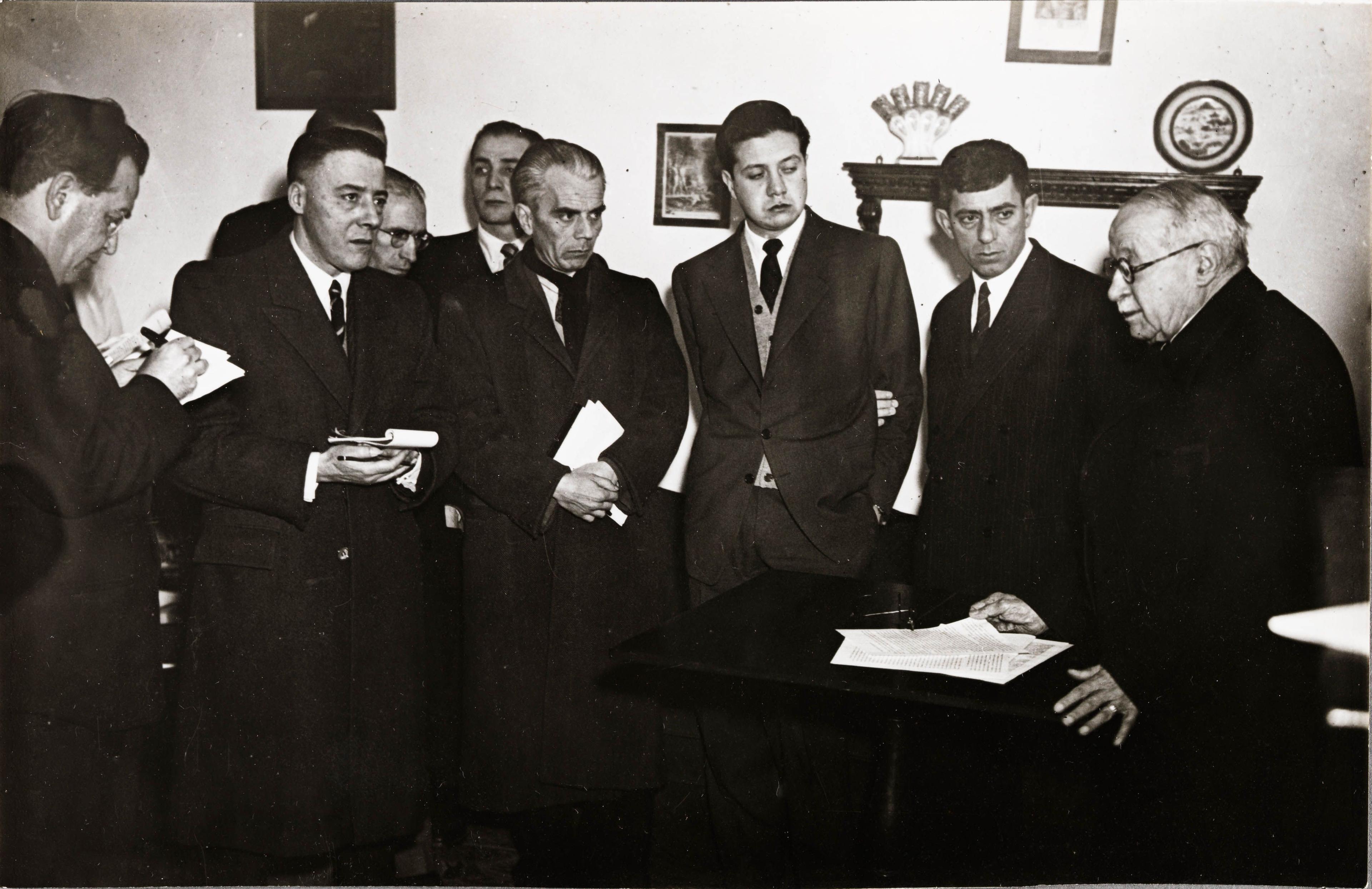 Starts his activity as an anti-fascist activist, handing out communist and MUNAF (Movement of National Anti-Fascist Unity) propaganda and, already in 1943, during the Summer school break, giving improvised lectures on political culture to small selected groups in the Caldas da Rainha region.