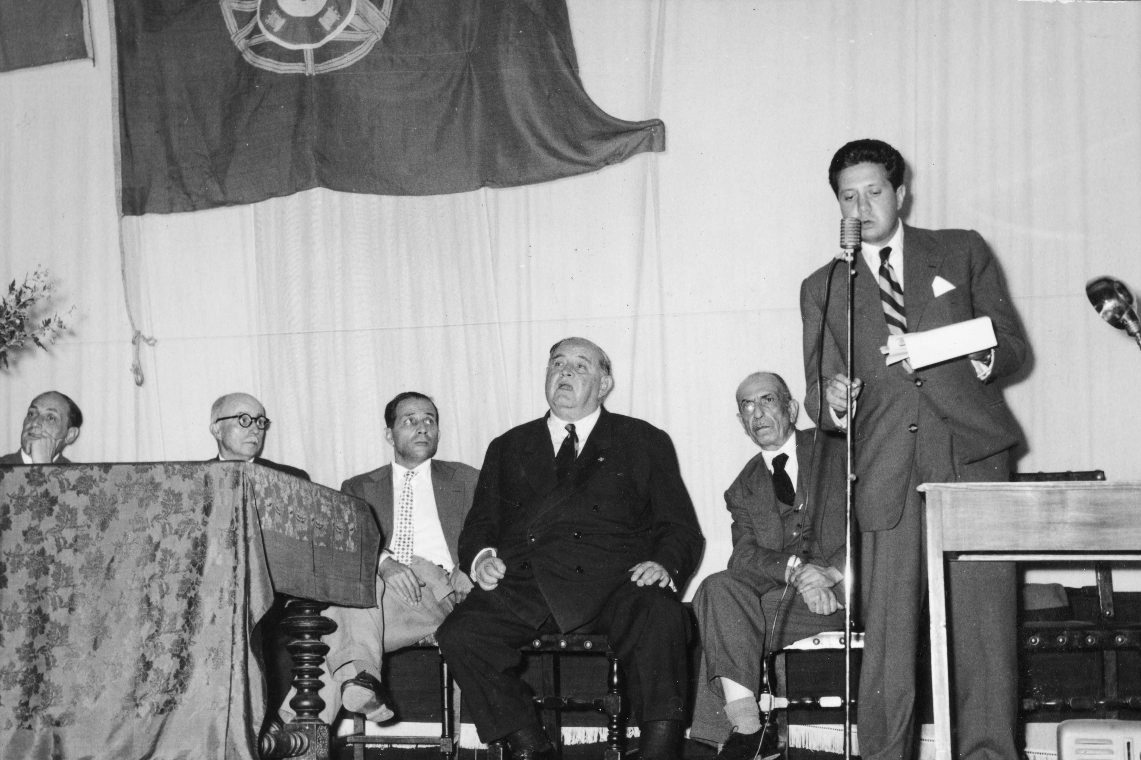 Takes part in a session promoted by MUD in which he presents the communication “The youth is not with the New State” (“A Juventude não está com o Estado Novo”).