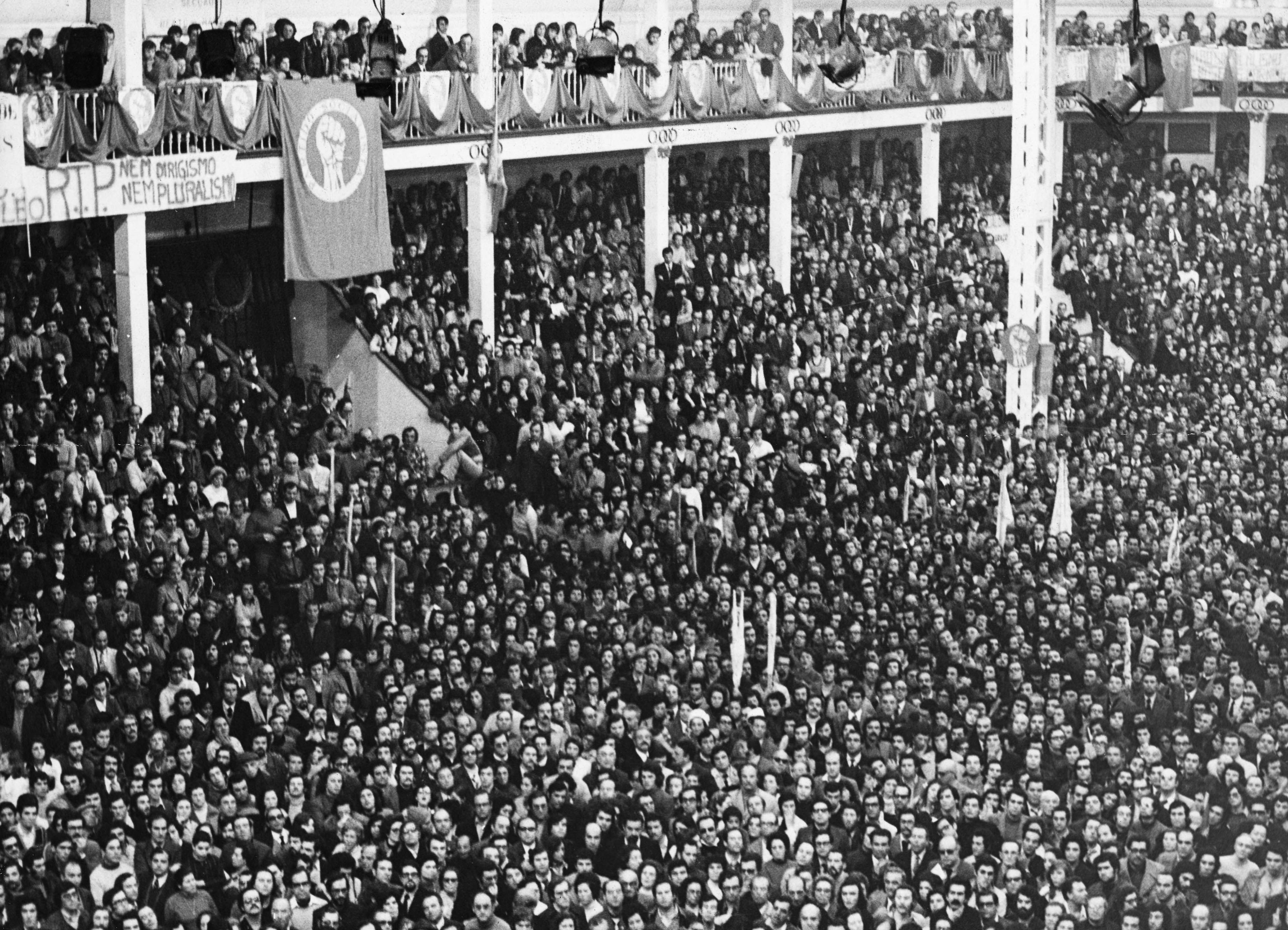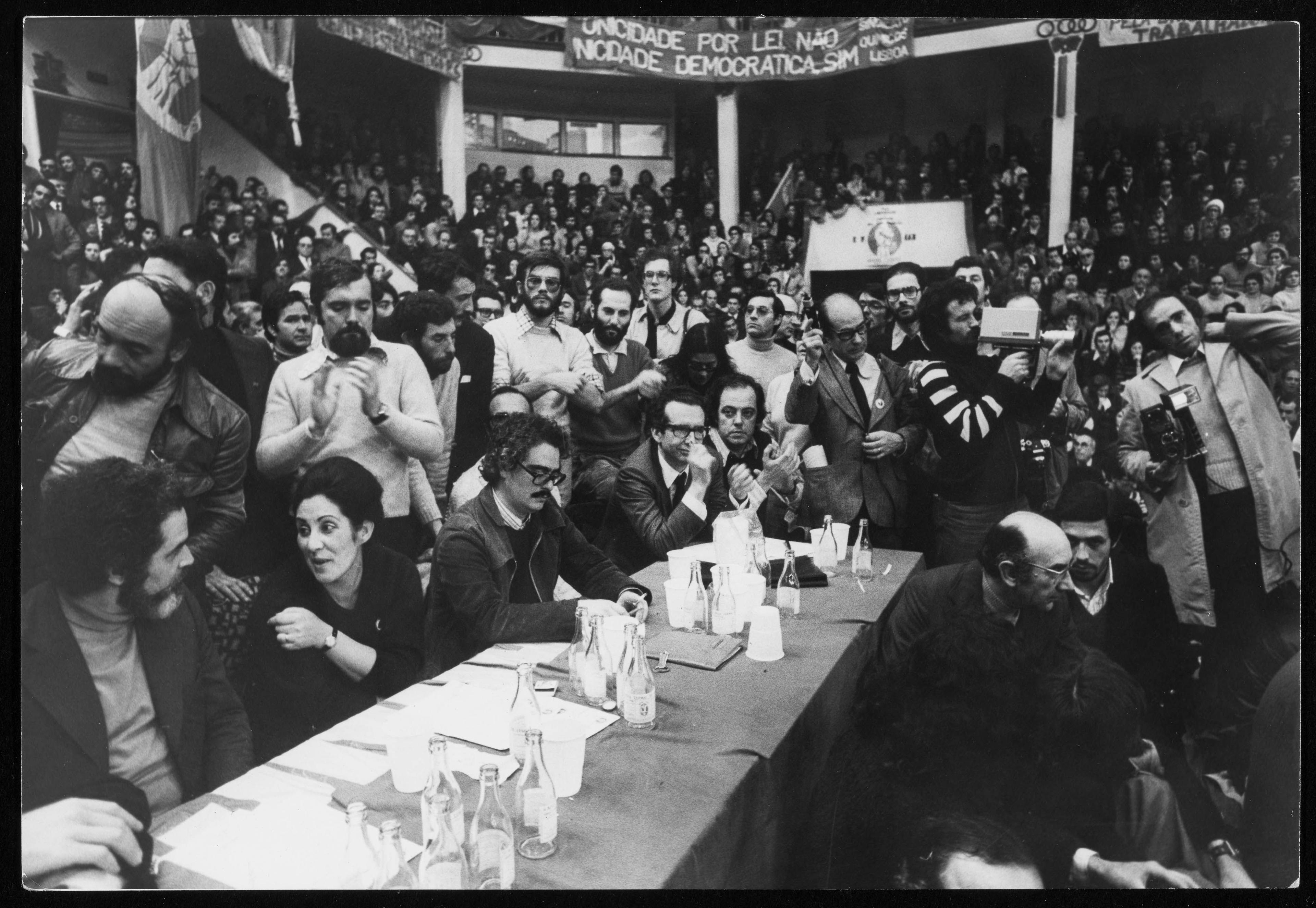 A Socialist Party rally at the Pavilhão dos Desportos in Lisbon against the single trade union policy takes place.