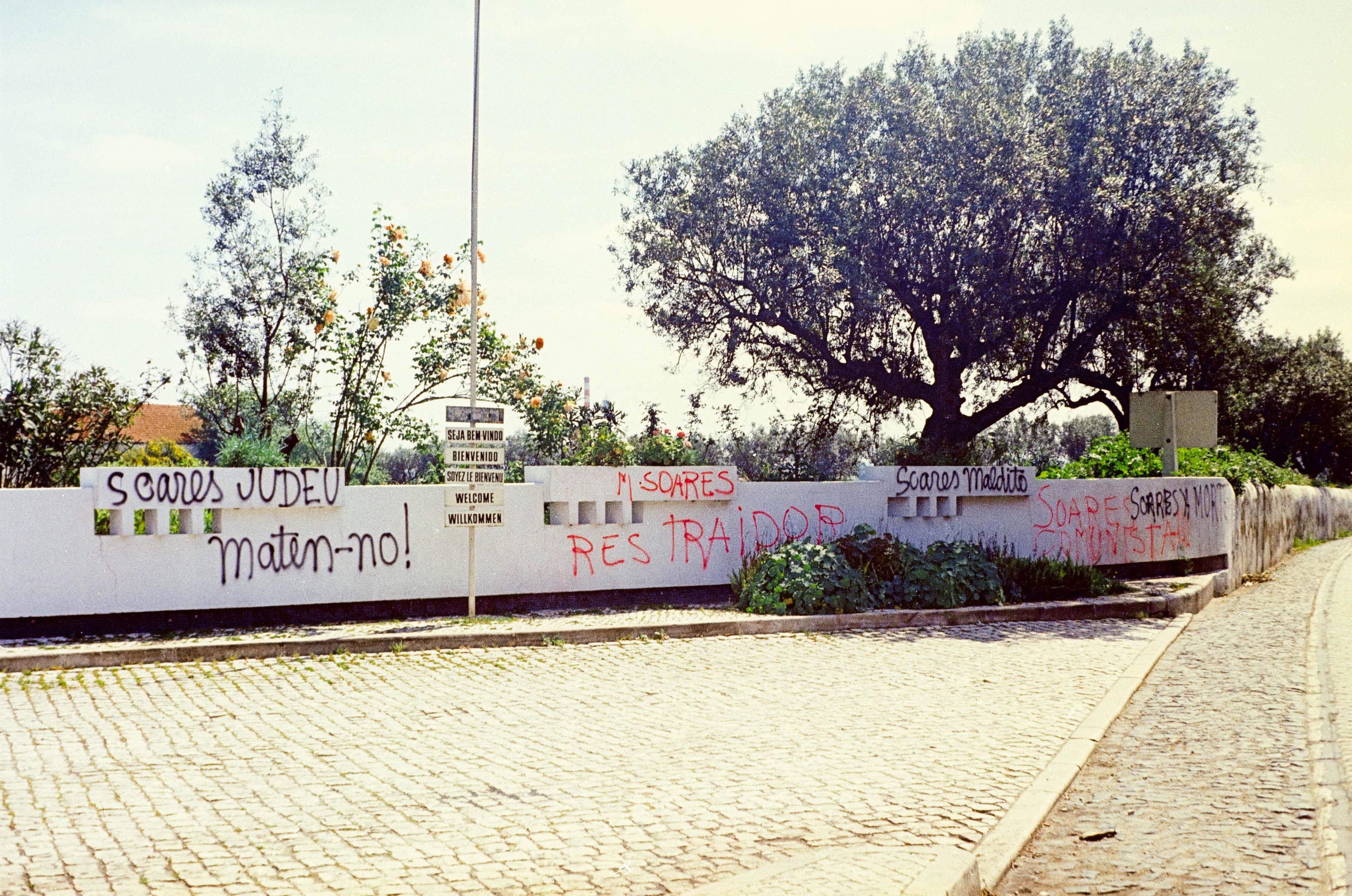 The DGS has announced the opening of proceedings against Mário Soares, accusing him of carrying out activities abroad that amount to an ‘attempt to separate parts of Portuguese territory from the mother country’ and ‘spreading false news that could jeopardise Portugal's good name abroad’. Various inscriptions began to appear on the walls of some of the country's roads, stating: ‘Soares turra! Kill him!’, ’Jewish Soares! Kill him!’ and “Soares to the platoon!”.